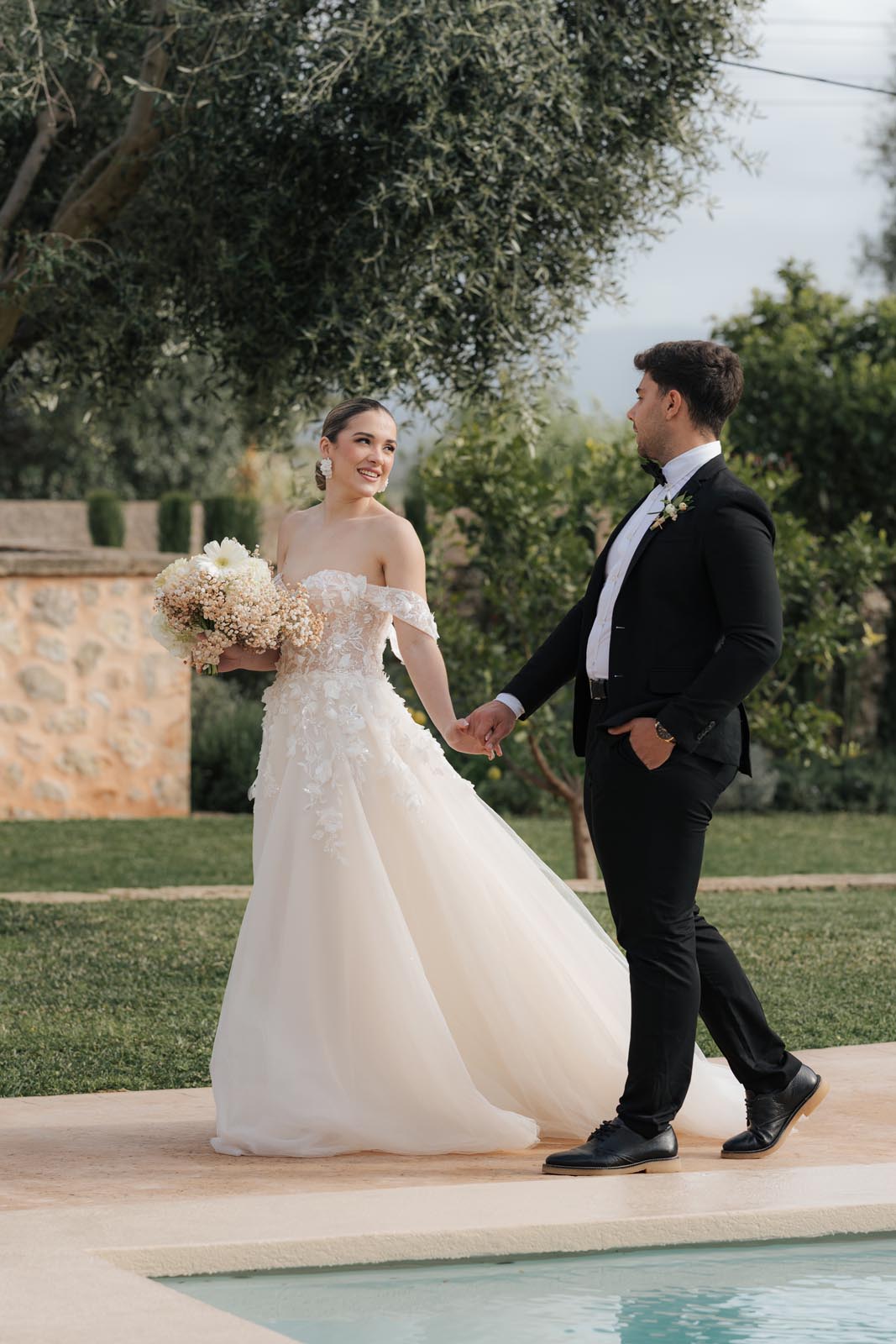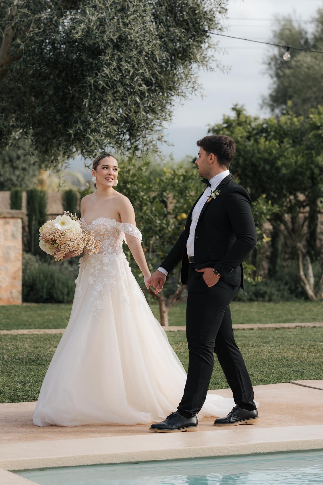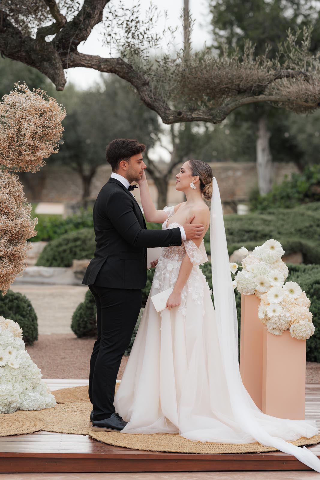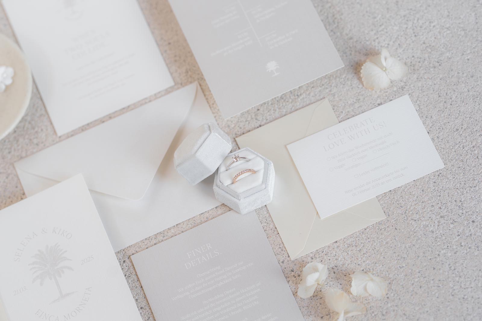Eleganz und mediterranes Flair – diese Hochzeit auf Mallorca wurde in zeitlosen Bildern festgehalten. Die historische Finca mit ihren Steinmauern und Gärten verlieh dem Tag eine besondere Atmosphäre, die in jeder Aufnahme spürbar bleibt.